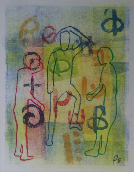 Lithograph in Colours with Oil Pastel Figures, 2018